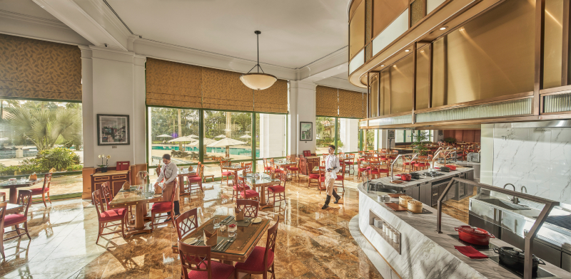 Nhà hàng Café Promenade với không gian thanh lịch cùng tầm nhìn tuyệt đẹp ra bể bơi Serenity